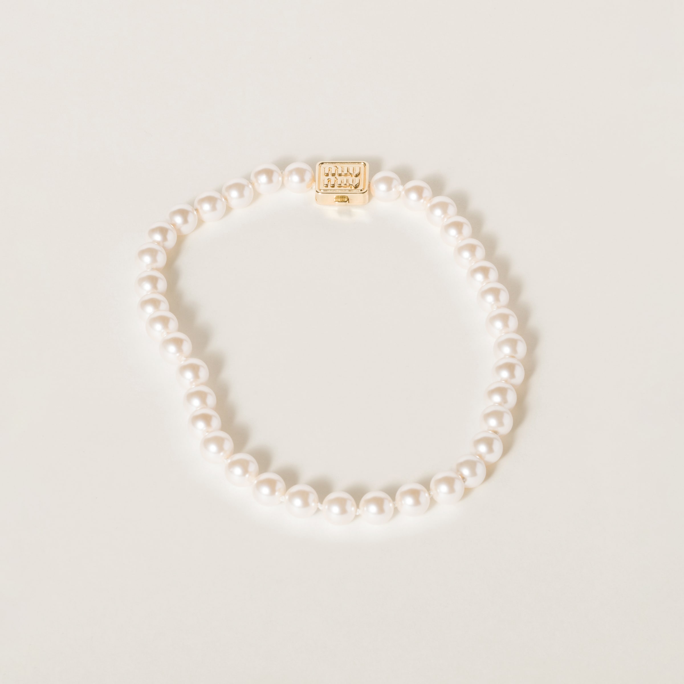 This necklace exudes a timeless charm with its delicate design, enhanced by the elegant allure of pearls. - Product code: 5IC167_2CVA_F04A6 - With synthetic pearl beads - Button closure - Logo on clasp closure - Sample size S/M/L - Imported Width 42cm Materials Main material: Glass