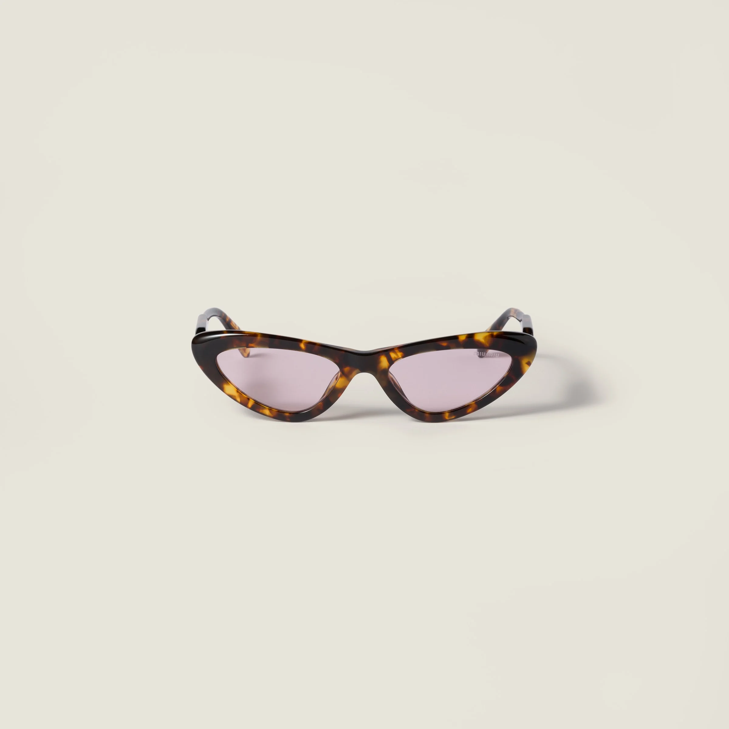Acetate sunglasses with a sophisticated attitude. The softly curved front features a distinctive cat-eye shape and is combined with flat temples decorated with the vertical Miu Miu logo that taper naturally towards the tip. - Product code: SMUB11_E14L_F04I0_C_U055 - Recycled acetate frame front - Color: Honey Tortoiseshell - Frame compatible with graduated lenses - 100% UVA / UVB protection - Full Fitting - Lens-nose-temple measurement: 55-19-140 mm - Article comes with dedicated packaging - Imported Materials Main material: Acetate