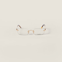 Miu Miu sunglasses with a sophisticated allure. The ultra-light metal frame features free-form rectangular lenses enriched by a playful color palette. The vertical Miu Miu logo adorns the ultra-thin temples - Product code: SMUB50_S5AK_FE08N_C_052 - Metal frame front - gold color - Frame not compatible with graduated lenses - 100% UVA/UVB protection - Non-prescription Blue Light lenses equipped with a special filter to reduce exposure to blue light from digital devices and sunlight - Adjustable nose pads adaptable to any fit - Lens-nose-temple measurement: 52-20-140 mm - Article comes with dedicated packaging - Imported Materials Main material: Metal