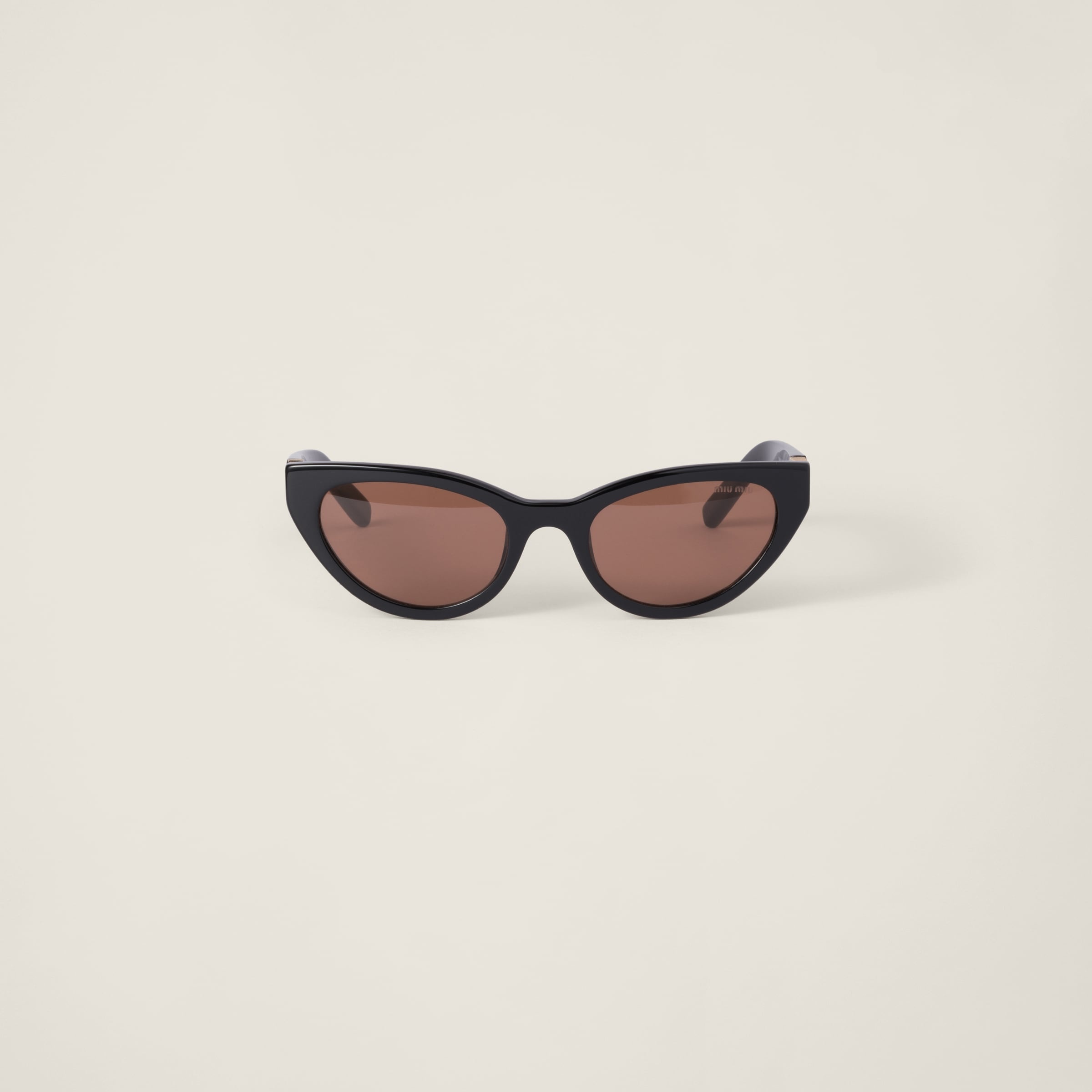 Acetate sunglasses characterized by a cat-eye silhouette. The oversized frame expresses contemporary femininity, while the straight temples are enriched with the iconic note of the Miu Miu vertical logo. - Product code: SMUA04_E16K_FE10I_C_054 - Acetate frame front - Color: Black - Frame compatible with graduated lenses - 100% UVA / UVB protection - Standard fit - Lens-nose-temple measurement: 54-20-140 mm - Article comes with dedicated packaging - Other colors available - Imported Materials Main material: Acetate