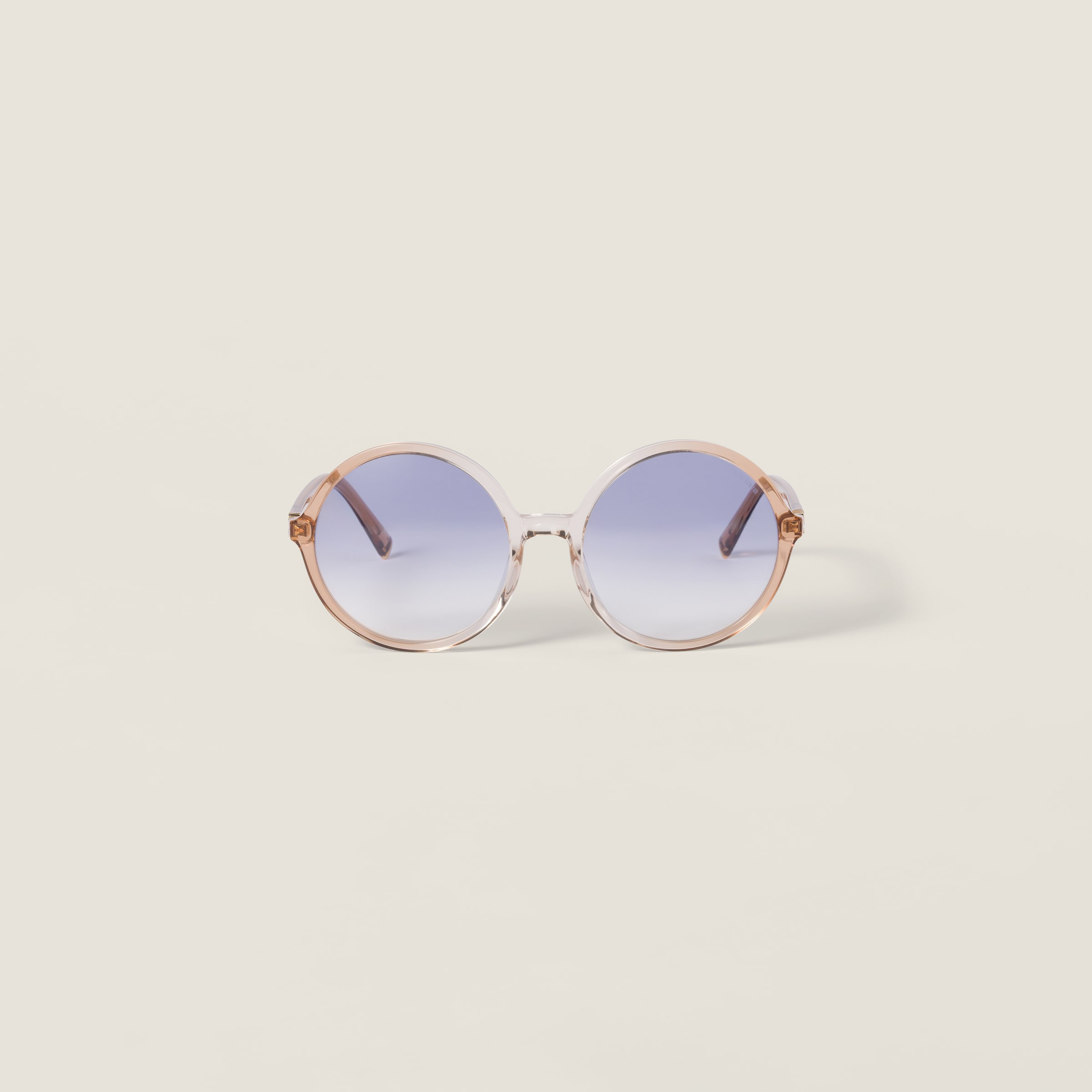 Miu Regard sunglasses are reinterpreted in a new oversized version with vintage allure. The acetate frame features a classic silhouette characterized by refined round lenses enhanced by slim rims. The temples are embellished with the refined touch of the vertical Miu Miu logo. - Product code: SMUB02_E26G_FE80O_C_059 - Bio-acetate frame front - Color: Gradient Brandy to Transparent - Frame compatible with graduated lenses - 100% UVA / UVB protection - Standard Fit - Lens-nose-temple measurement: 59-20-140 mm - Article comes with dedicated packaging - Imported Materials Main material: Acetate