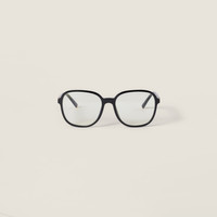 Miu Regard sunglasses are reinterpreted in a new oversized version with vintage allure. The acetate frame features a large, feminine square design with clean, classic lines. The temples are embellished with the refined touch of the vertical Miu Miu logo. - Product code: SMUB01_S16K_FE08N_C_058 - Recycled bio-acetate frame front - Color: Black - Frame compatible with graduated lenses - 100% UVA / UVB protection - Blue Light lenses without prescription have a special filter to reduce exposure to the blue light of digital devices and sunlight - Standard fit - Lens-nose-temple measurement: 58-18-140 mm - Article comes with dedicated packaging - Imported Materials Main material: Acetate