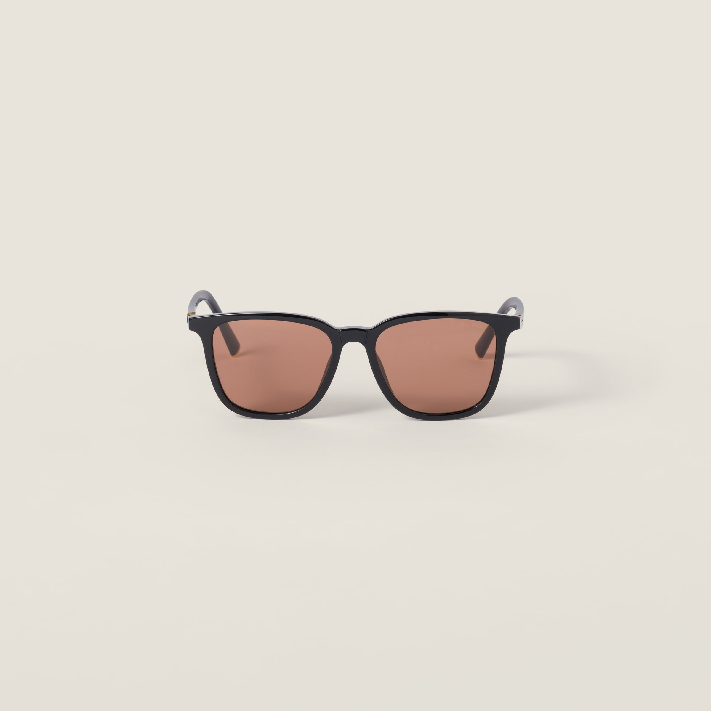 Miu Regard sunglasses are reinterpreted in a new oversized version. The acetate frame features a contemporary square design outlined by thin rims. The temples are embellished with the refined touch of the vertical Miu Miu logo. - Product code: SMUB03_E16K_FE90Q_C_053 - Recycled acetate frame front - Color: Black - Frame compatible with graduated lenses - 100% UVA / UVB protection - Standard Fit - Lens-nose-temple measurement: 53-17-140 mm - Article comes with dedicated packaging - Imported Materials Main material: Acetate
