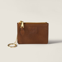 The fine touch of nappa leather and the iconic Miu Miu logo enrich the simple lines of this card holder. The zipper pocket and key ring detail complete the design, combining functionality and character. - Product code: 5MC093_AEFX_F0316 - Three card slots - Zipper closure - With removable metal key ring - Moire and nappa leather lining - Embossed lettering logo - Imported Height 8cm Width 11cm Materials Main material: Lambskin