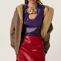 Lively nuances and sleek lines express the sophisticated femininity of this nappa leather skirt made unique by the natural luster and softness created by the hand-finished treatment, an example of refined craftsmanship. - Product code: MPD820_165Z_F0011_S_OOO - Unlined garment - Regular fit - Side zipper closure with hook - Embossed lettering logo - Imported - The model is 176 cm tall and wears a size 38 Height 52cm Materials Main material: Lambskin