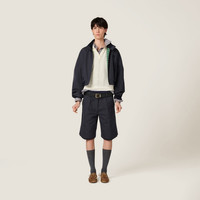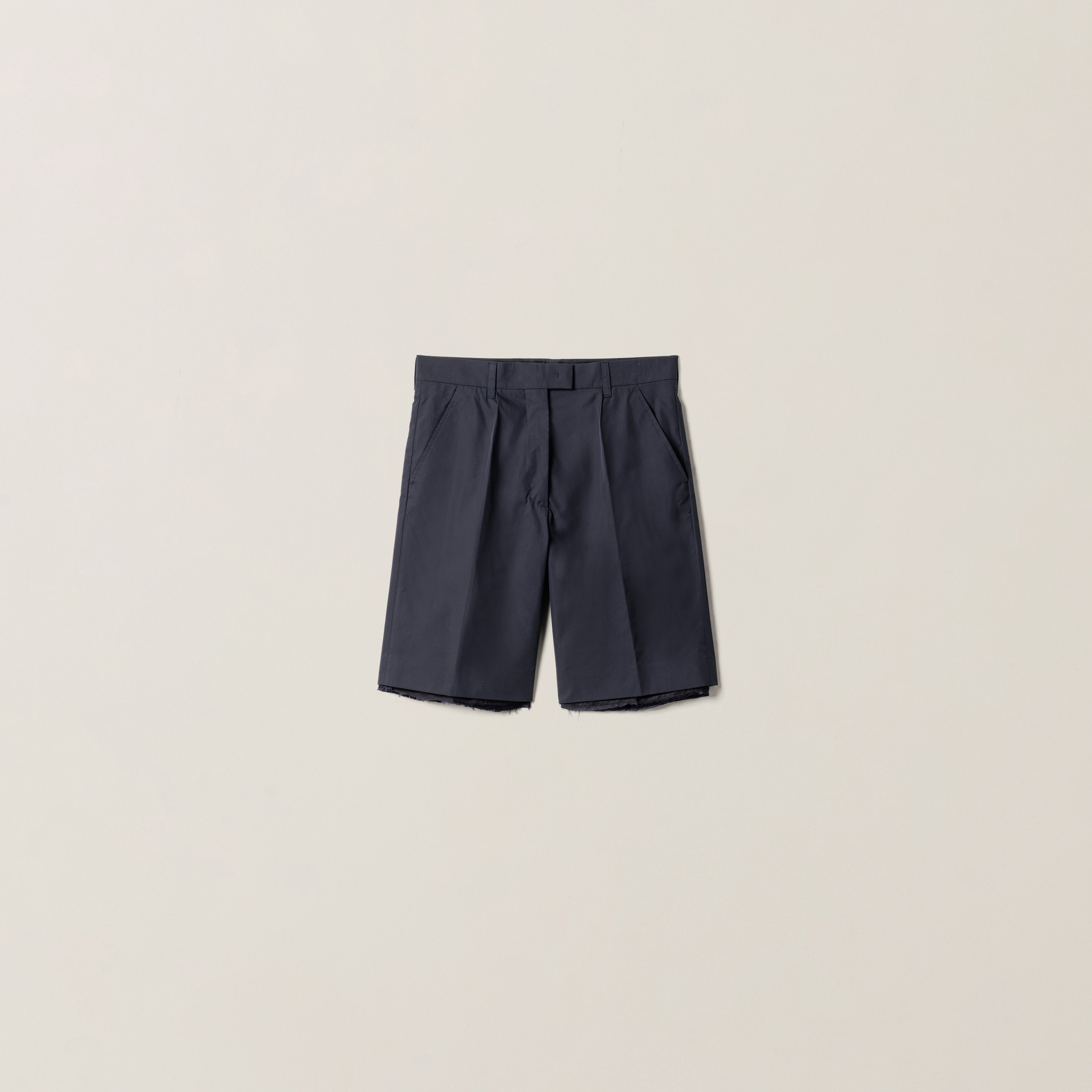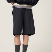 The raw-cut hem on these Panama cotton Bermudas is a characteristic element of Miu Miu style, enhancing and distinguishing the clean lines, enriched with menswear references. - Product code: MP1909_12NS_F0008_S_OOO - Bermuda shorts fit - Lined garment - Zipper fly with button - Angled front slash pockets - Back flap pockets - Embroidered logo - Imported Height 54cm Materials Main material: 75% Cotton 25% Polyester