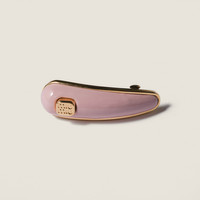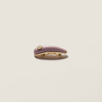 The iconic Miu Miu metal logo adds a contemporary accent to this patent leather hair clip, completing each look with a touch of strong and sophisticated femininity. - Product code: 5IF241_069_F0E18 - With metal trim - Visible metal logo - Imported Height 1.7cm Width 5.2cm Materials Main material: Lambskin