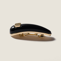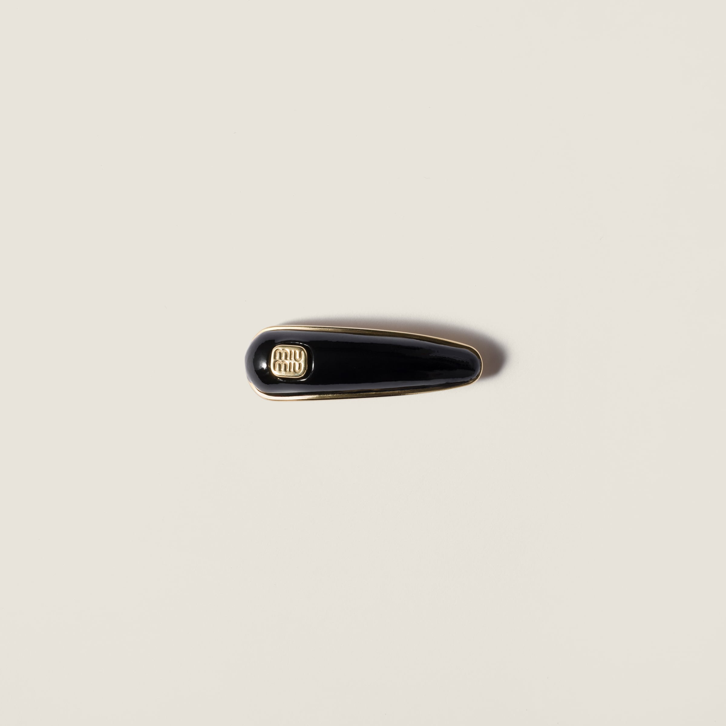 The iconic Miu Miu metal logo adds a contemporary accent to this patent leather hair clip, completing each look with a touch of strong and sophisticated femininity. - Product code: 5IF241_069_F0002 - With metal trim - Visible metal logo - Imported Height 1.7cm Width 5.2cm Materials Main material: Lambskin