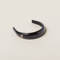 Among the essential accessories of Miu Miu collections, this patent leather headband stands out for the lettering logo that decorates the design, adding an iconic note. - Product code: 5IH025_069_F0002 - Metal lettering logo - Imported Height 4cm Materials Main material: Lambskin