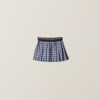 The pleated effect and mesh trim on this miniskirt accentuate its dynamic, lifestyle allure, exploring a summer version of the check pattern, an iconic symbol of Miu Miu style. - Product code: MG2483_17LX_F0Q0U_S_OOO - Mini fit - Elasticized waistband - Mesh fabric trim - Embroidered logo - Imported - The model is 178 cm tall and wears a size 38 Height 30cm Materials Main material: 100% Cotton