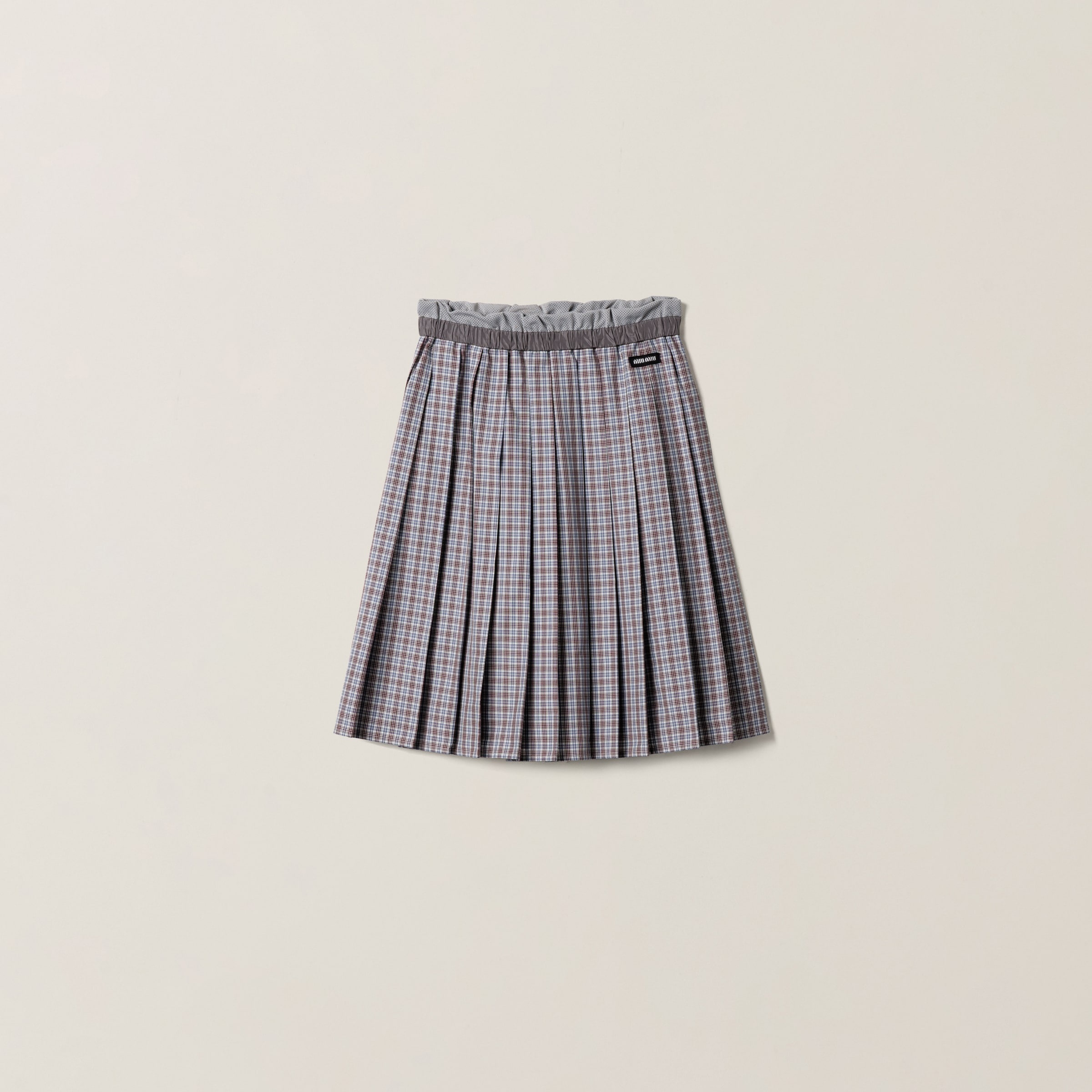 The pleated effect and mesh trim on this skirt accentuate its dynamic, lifestyle allure, exploring a summer version of the check pattern, an iconic symbol of Miu Miu style. - Product code: MG2467_17LX_F0OBD_S_OOO - Pleated silhouette - Unlined garment - Elasticized waist - Mesh fabric trim - Knit logo label - Imported - The model is 180 cm tall and wears a size 38 Height 61cm Materials Main material: 100% Cotton