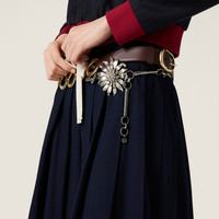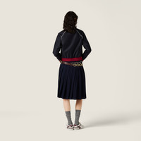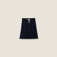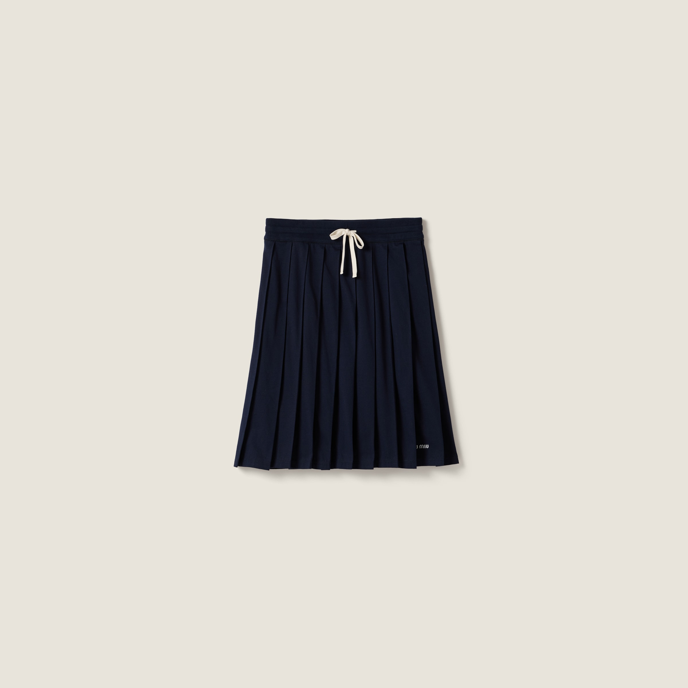 Jersey, an emblematic fabric in the Miu Miu wardrobe, reinterprets the character of the classic pleated skirt through the garment dyeing process, which enhances its relaxed versatility and contemporary femininity. - Product code: MJD220_1610_F0008_S_OOO - Pleated - Unlined garment - No pockets - Embroidered logo - Imported - The model is 180 cm tall and wears a size 38 Height 59cm Materials Main material: 100% Cotton