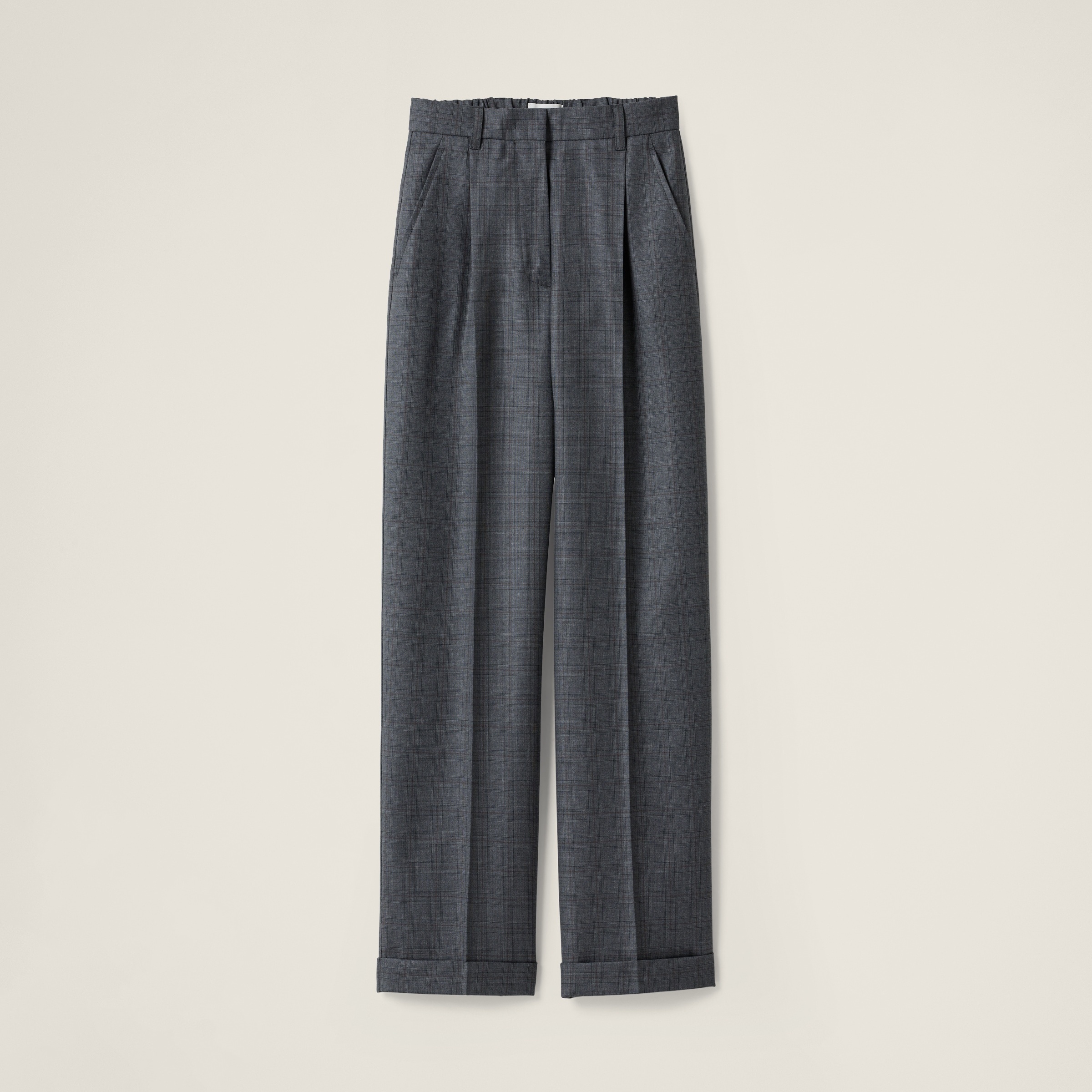 The Prince of Wales check of these pants recalls menswear. The loose fit and the iconic embroidered logo make it ideal for bold combinations and reinterpretations of classic looks. - Product code: MP1748_16E6_F0480_S_OOO - Wide-leg fit with turned-up cuff - Unlined - Zipper fly with hook - Angled front slash pockets - Back welt pockets - Embroidered logo - Imported Height 108cm Materials Main material: 100% Virgin Wool