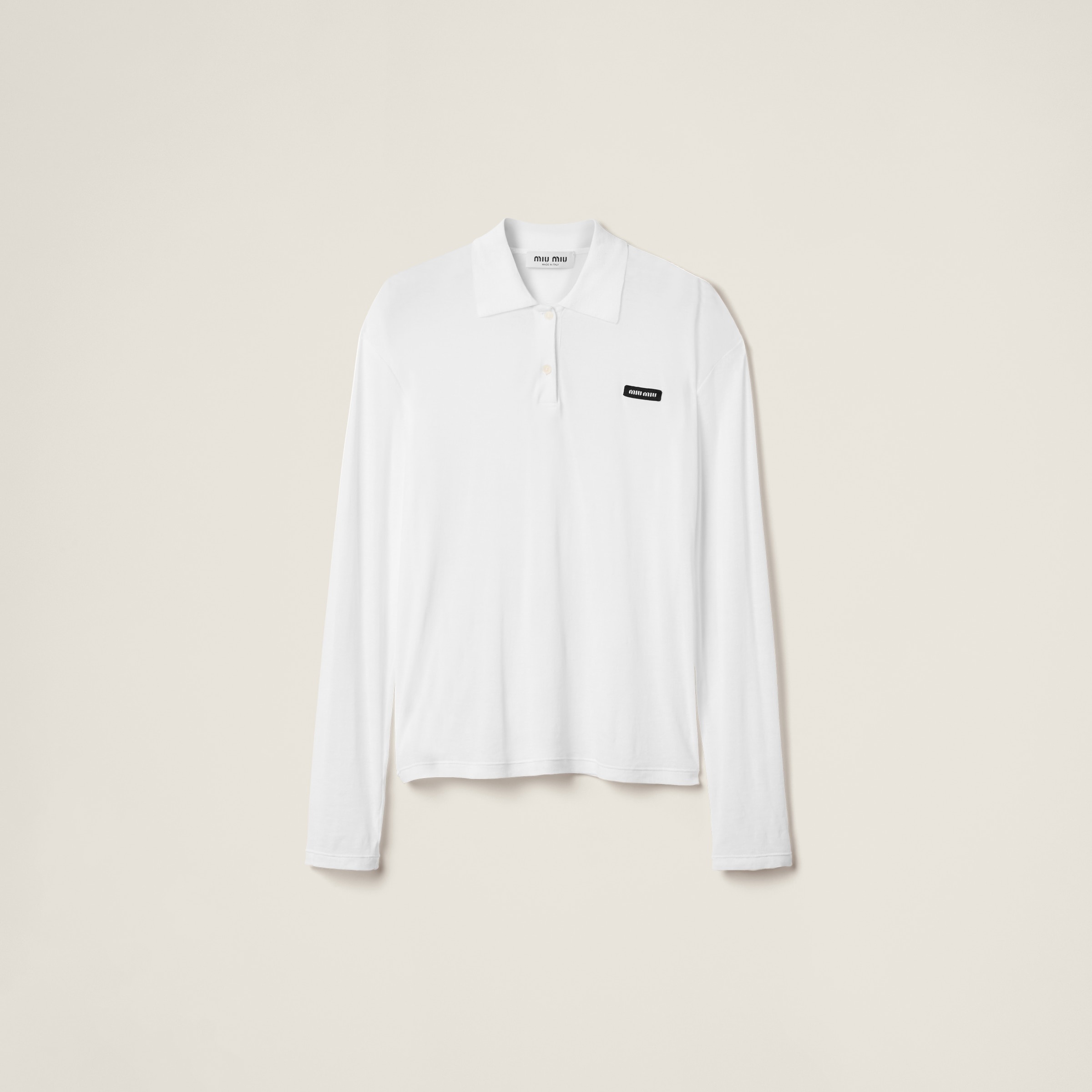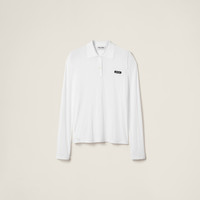 Understated lines and subtle transparencies redefine this ribbed jersey polo shirt, creating a play of lightness and simple versatility. - Product code: MJL050_133O_F0009_S_OOO - Oversized fit - Long sleeves - Polo collar - Twin-needle hem - Logo patch - Imported - The model is 178 cm tall and wears a size 38 Height 75cm Materials Main material: 100% Cotton