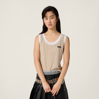 The subtle transparency of ribbed jersey enhances the layering of this tank top in which the harmonious colors and versatile lines give it a young, summery mood. - Product code: MJT668_11QG_F0HEN_S_OOO - Loose fit - Scoop neck - Sleeveless - Twin-needle hem - Logo patch - Imported - The model is 178 cm tall and wears a size 38 Height 64cm Materials Main material: 100% Cotton