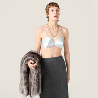 The silhouette of this satin bra embodies decisive, minimalist sensuality that enhances looks with layered combinations in a subtle balance between irony and elegant femininity. - Product code: RG9504_18BE_F0M10_S_OOO - Bra - Lined garment - Elastic closure with buttons on the back - Logo patch - Imported - The model is 177 cm tall and wears a size 38 Materials Main material: 59% Cotton 41% Viscose