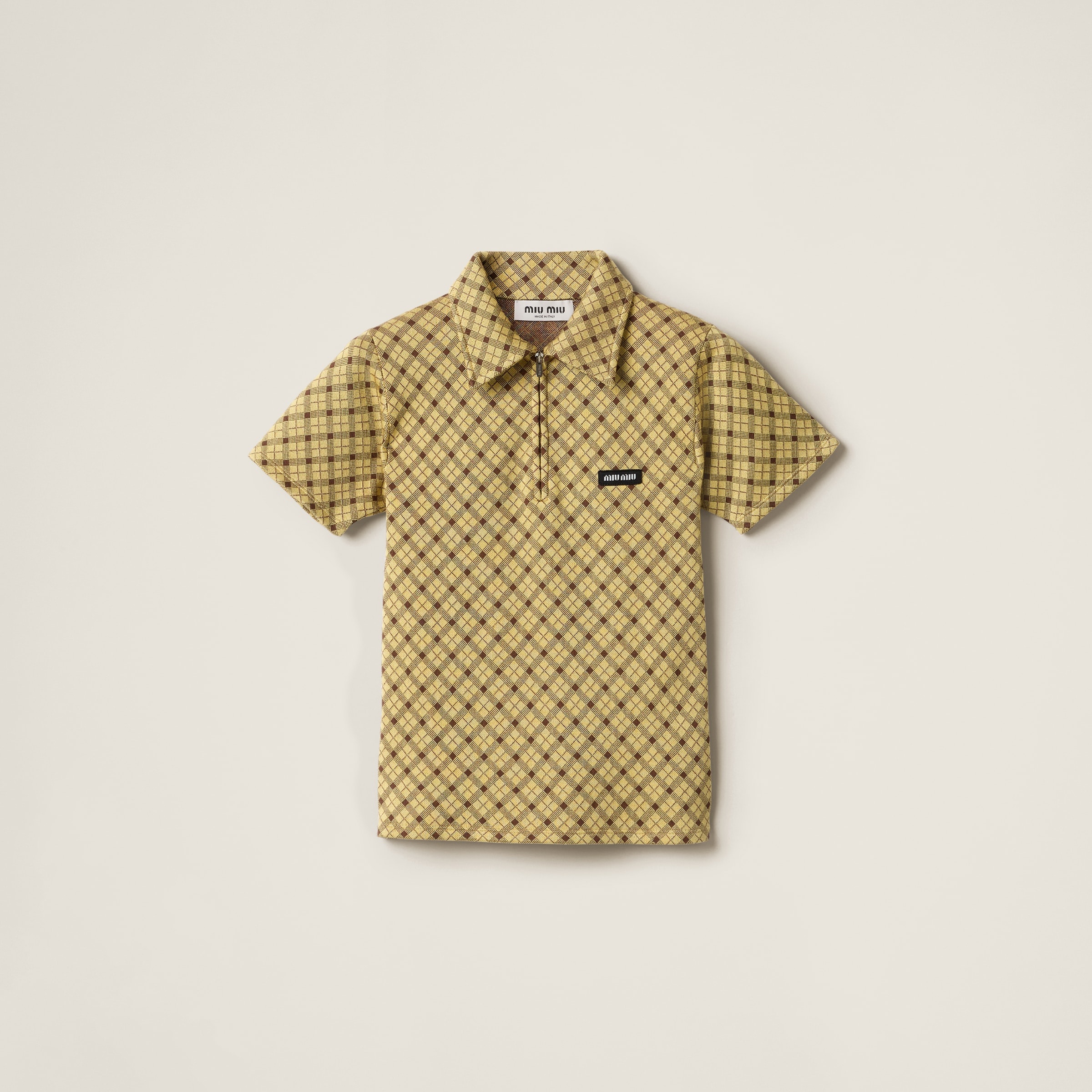 Inspired by the styles of the 1970s, this extra fine silk pique polo shirt combines allure and modernity, stylishly completing looks with impactful layering. - Product code: MMLA80_16W6_F0061_S_OOO - Jacquard knit - Slim-fit silhouette - Short sleeves - Regular shoulder - Front zipper closure - Knit logo patch - Imported - The model is 177 cm tall and wears a size 38 Height 51cm Materials Main material: 100% Recycled Silk