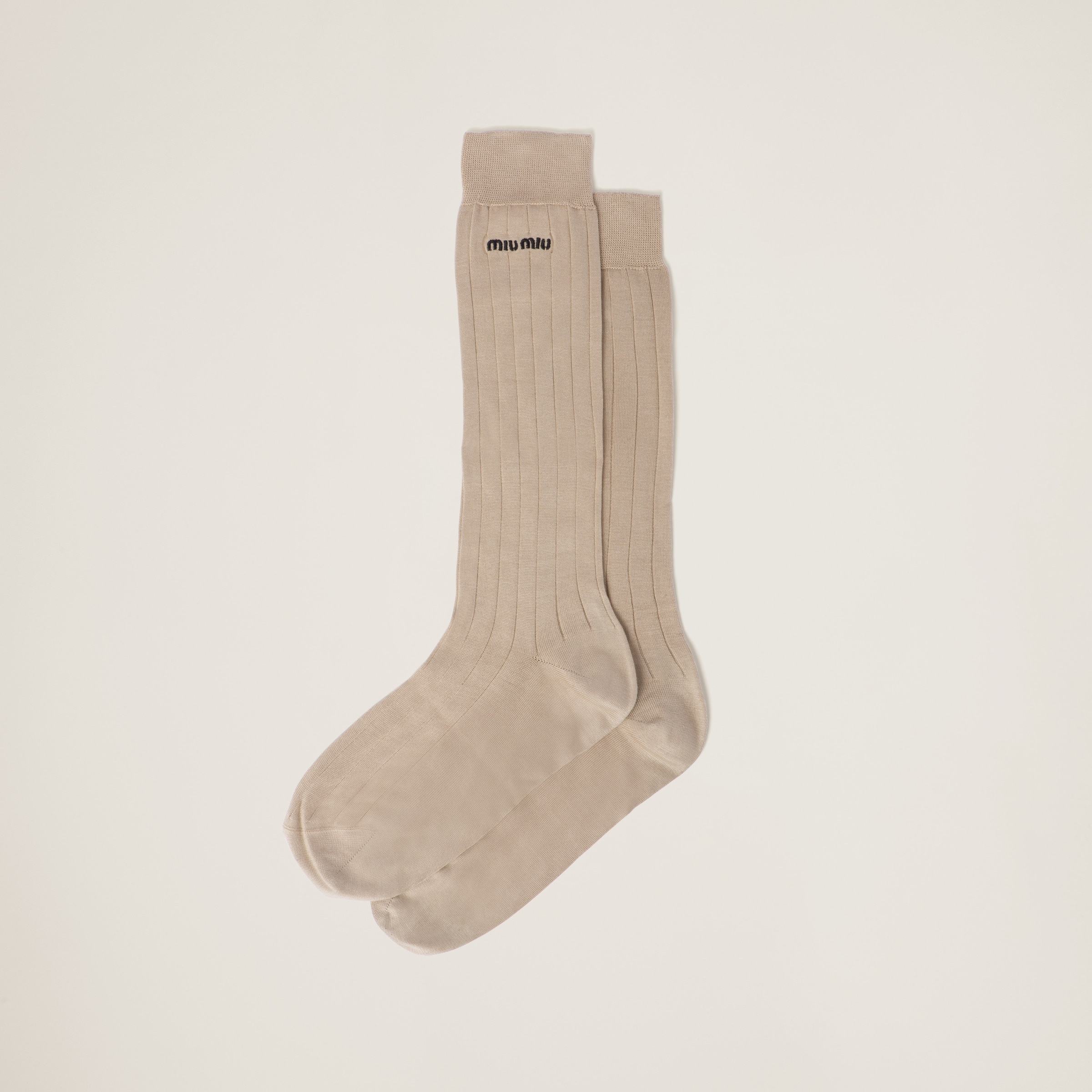The embroidered Miu Miu logo adds an iconic touch to these silk socks with a smooth, compact feel. - Product code: MCZ475_14A0_F0627_S_OOO - Ribbed knit - Embroidered logo - Imported