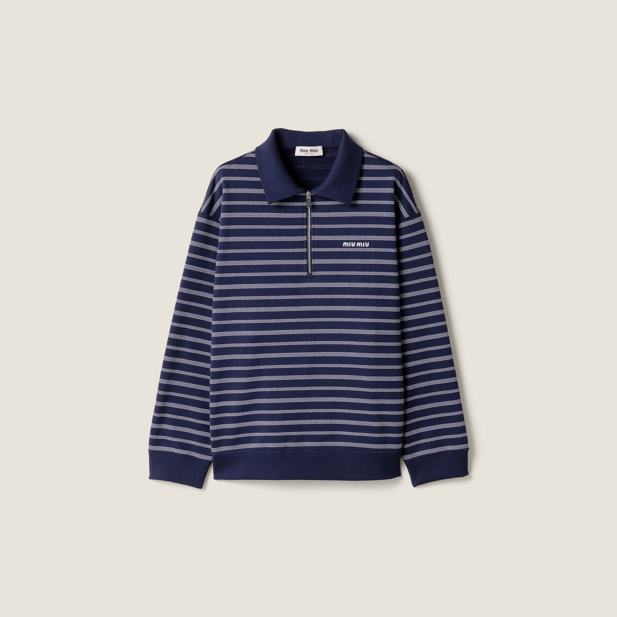 The casual attitude and iconic knit stripe motif express the style of this cotton fleece polo shirt with ribbed knit collar and cuffs and the precious detail of the embroidered logo. - Product code: MJL773_174V_F022X_S_OOO - Boxy fit - Unlined garment - Long sleeves with ribbed knit cuffs - Polo shirt collar - Front half-zipper closure - Straight ribbed knit hem - Embroidered logo - Imported - The model is 177 cm tall and wears a size 38 Height 70cm Materials Main material: 100% Cotton