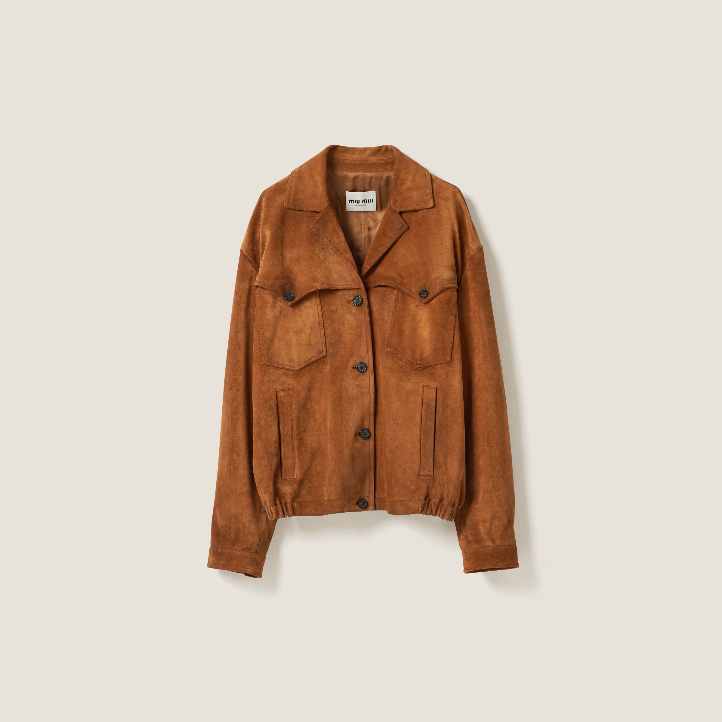 Vintage style characterizes this suede jacket. The elasticized hem adds a casual detail while the lettering logo completes the design with an iconic note. - Product code: MPV887_1421_F0401_S_OOO - Lined - Regular fit - Front button closure - Shirt-style collar - Straight sleeves and shirt-style cuffs with buttons - Welt and patch pockets - Elasticized hem - Embossed lettering logo - Washed treatment - Imported - The model is 177 cm tall and wears a size 38 Materials Main material: Calfskin