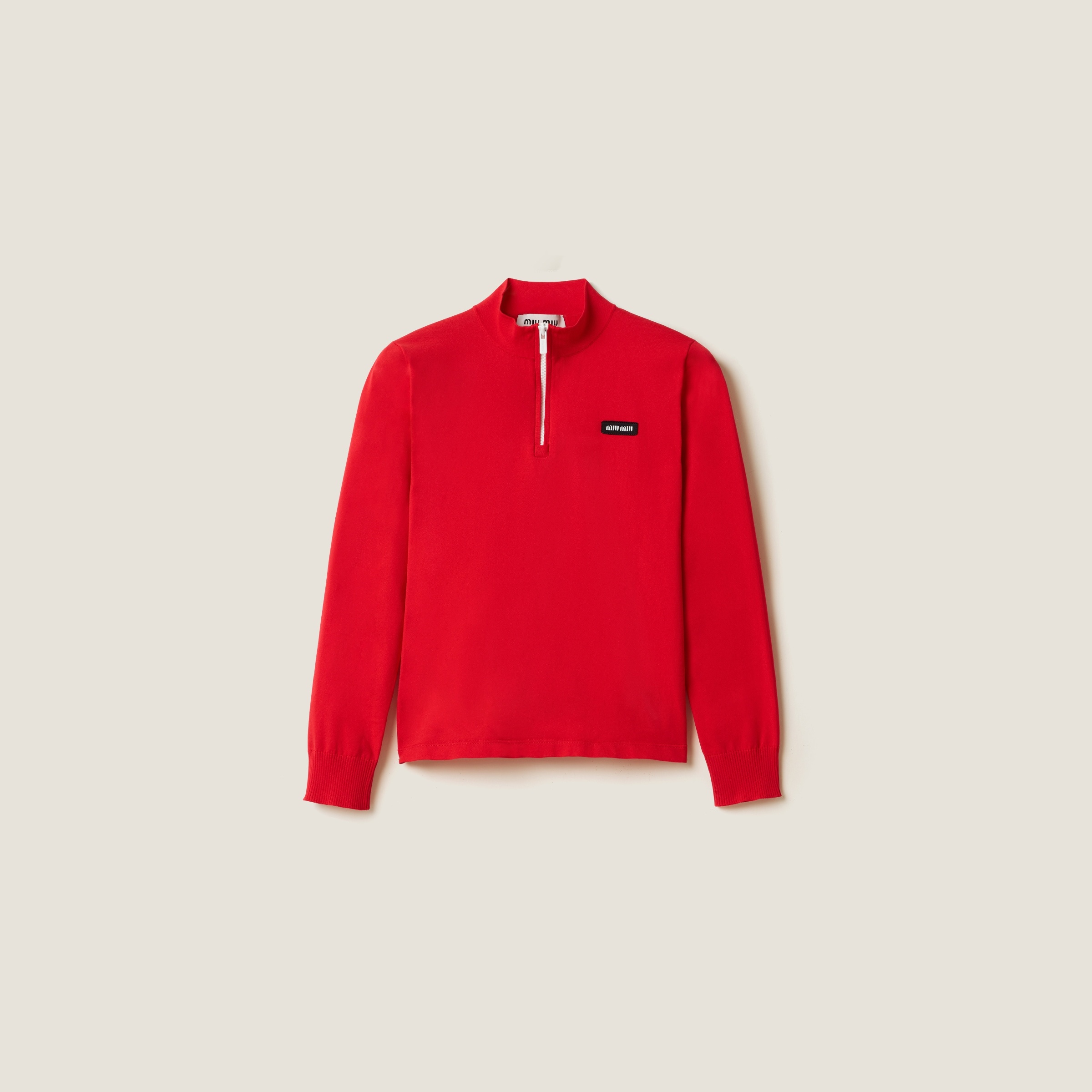 This sweater made of recycled technical yarn combines the charm of activewear with the sophistication of knitwear, creating new combinations with casual, sporty influences. - Product code: MMLA86_16WL_F0011_S_OOO - Plain knit - Slim-fit silhouette - Long sleeves - Regular shoulder - Ribbed knit cuffs - Front zipper closure - Knit logo patch - Imported - The model is 178 cm tall and wears a size 38 Height 52cm Materials Main material: 100% Recycled Polyamide