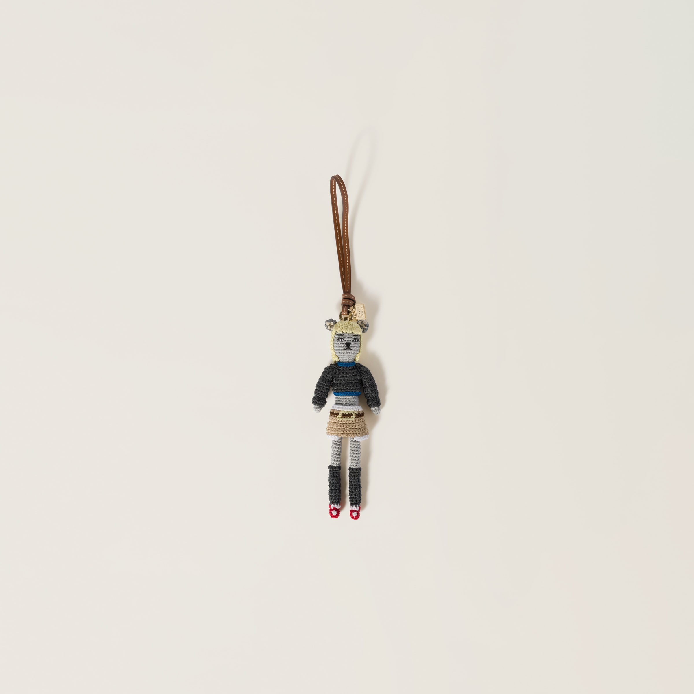 An iconic archive look is the protagonist of this crochet-effect technical yarn trick that adds character to Miu Miu bags, highlighting its craftsmanship with original style combinations. - Product code: 5TT214_2CU3_F0KIV - Crochet effect - Leather strap - Logo-engraved medal - Imported Materials Main material: Recycled Polyester