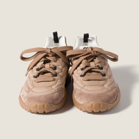 Tyre combines elegance and sporty functionality. The dynamic rubber sole, which is flexible and scuff-proof, recalls the pattern on tires. Made of technical fabric and suede, these sneakers express Miu Miu's bold identity. - Product code: 5E417E_ZJM_F01DP_F_005 - Laces closure - Fabric and leather lining - Screen-printed logo on the tongue, heel collar, and insole - EVA and rubber sole with logo - Star-patterned tread - Removable leather-covered insole - Imported Materials Main material: Recycled Polyamide