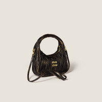 The Wander bag is reinterpreted in a matelasse nappa leather version with a vintage texture, enhanced with unique details that celebrate the refined craftsmanship and iconic versatility of Miu Miu style. - Product code: 5BC125_AF6Q_F0201_V_OOY - Matelasse workmanship - Removable leather shoulder strap, length: 110 cm - Gold-tone metal/steel hardware - Zipper closure - Cotton satin lining - Metal lettering logo on the front - Imported Height 17cm Width 20cm Length 6cm Materials Main material: Lambskin