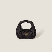 The charm of the Wander bag is expressed in its mini size and the elegant texture of this silk version, made iconic by the distinctive matelasse motif. - Product code: 5BP078_2CV8_F0002_V_OLO - Matelasse workmanship - Detachable leather shoulder strap, length 110 cm - Gold-tone hardware - Zipper closure - Silk satin lining - Metal lettering logo on the front - Imported Height 14cm Width 17.5cm Length 5.5cm Materials Main material: Silk