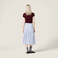 The Argyle motif adds a light, graphic touch to the exquisite crafting of this wool knit polo shirt that reinterprets a classic garment through Miu Miu's contemporary vision. - Product code: MMLB66_174C_F0007_S_OOO - Intarsia argyle knit - Straight fit - Short sleeves - Semi-raglan shoulder - Ribbed knit sleeve trim and hem - Front button closure - Intarsia logo - Imported - The model is 177 cm tall and wears a size 38 Height 57cm Materials Main material: 100% Virgin Wool