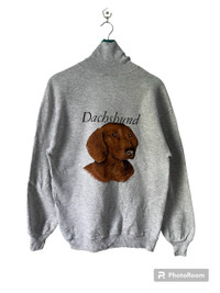 Tag : Jerzees Made in USA - Hilton Head Island South Carolina Tshirt - Copyright 1991 Air Waves Inc. - Big Printed Dachshund on the back - Turtleneck Sweatshirt - 50% Cotton 50% Polyester Condition: Good ππΌ No holes, stains, or tears β οΈ Please refer condition on all photos Size on tag: Large Manual measurements: Chest (Armpit - Armpit) - 21.5β Length - 27.5β Sleeve length (shoulder to wrist) - 22.5β Shoulder length - 22β πΈ Please see the detailed pictures first and ask me about this item if you are interested in getting rid of the confusion later. Easy to deal. If you are interested, chat me the offer you want. I will accept if affordable. Shipping: Worldwide π βοΈ Ship via tracking numbers Thank you