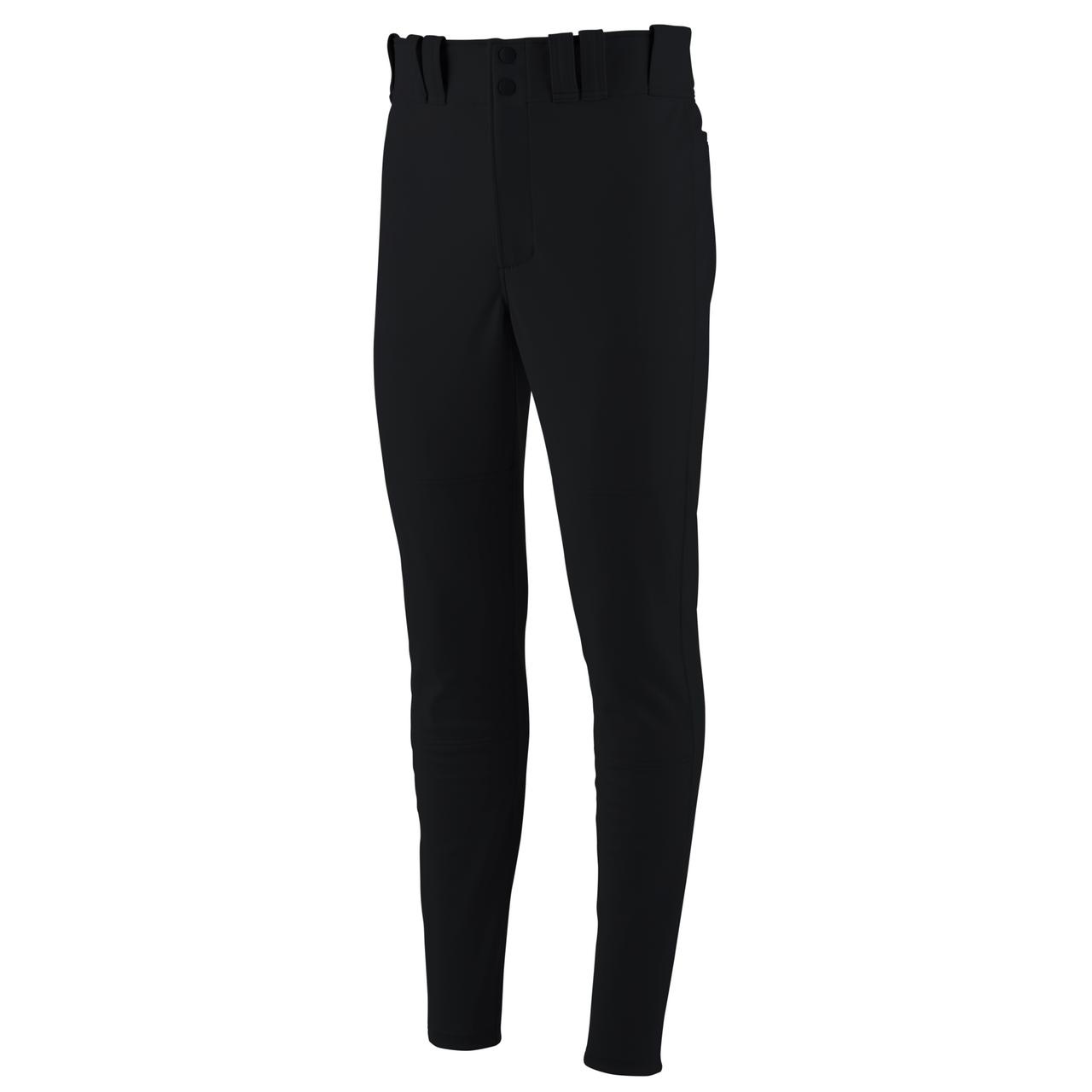 Mizuno's latest addition to our premium pant line-up. The Premier Pro Tapered Pant is a fitted baseball pant using 92% polyester and 8% spandex. This pant combines flexibility, durability and style. Finished with 2 set-in back pockets and traditional tunnel belt loops. - Tunnel-belt loop waist - Fly front with extended two-snap closure - Set-in back pockets with button closure - Double Knee: Dual-layer knee construction for added protection. - Hemmed bottom - Embroidered Logo - Double Knit: Lightweight and durable fabric construction
