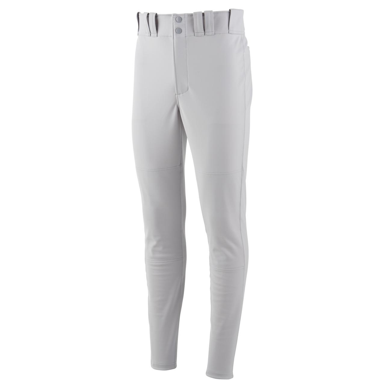 Mizuno's latest addition to our premium pant line-up. The Premier Pro Tapered Pant is a fitted baseball pant using 92% polyester and 8% spandex. This pant combines flexibility, durability and style. Finished with 2 set-in back pockets and traditional tunnel belt loops. - Tunnel-belt loop waist - Fly front with extended two-snap closure - Set-in back pockets with button closure - Double Knee: Dual-layer knee construction for added protection. - Hemmed bottom - Embroidered Logo - Double Knit: Lightweight and durable fabric construction