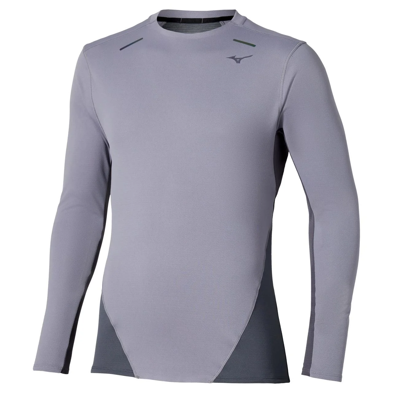 Stay warm and comfortable with the Men's Tech Thermal Charge Breath Thermo Long Sleeve Tee. Featuring Mizuno's exclusive Breath Thermo technology, this innovative fabric generates heat from escaping body vapor. Strategically placed Breath Thermo panels on the large muscle areas of the front ensure optimal warmth, while the rest of the top provides excellent breathability and stretch for unrestricted movement. Ideal for cold-weather workouts, this top combines advanced thermal regulation with superior comfort and flexibility. - BREATH THERMO® : Mizuno's exclusive thermal fabric technology that uses escaping body vapor to generate heat. - Reflective details - Semi-Fitted: Designed to fit closely to the body. If you prefer a more relaxed fit, size up. - 1/2 Zip construction - Flatlock seaming - Eco Friendly Materials: Recycled materials