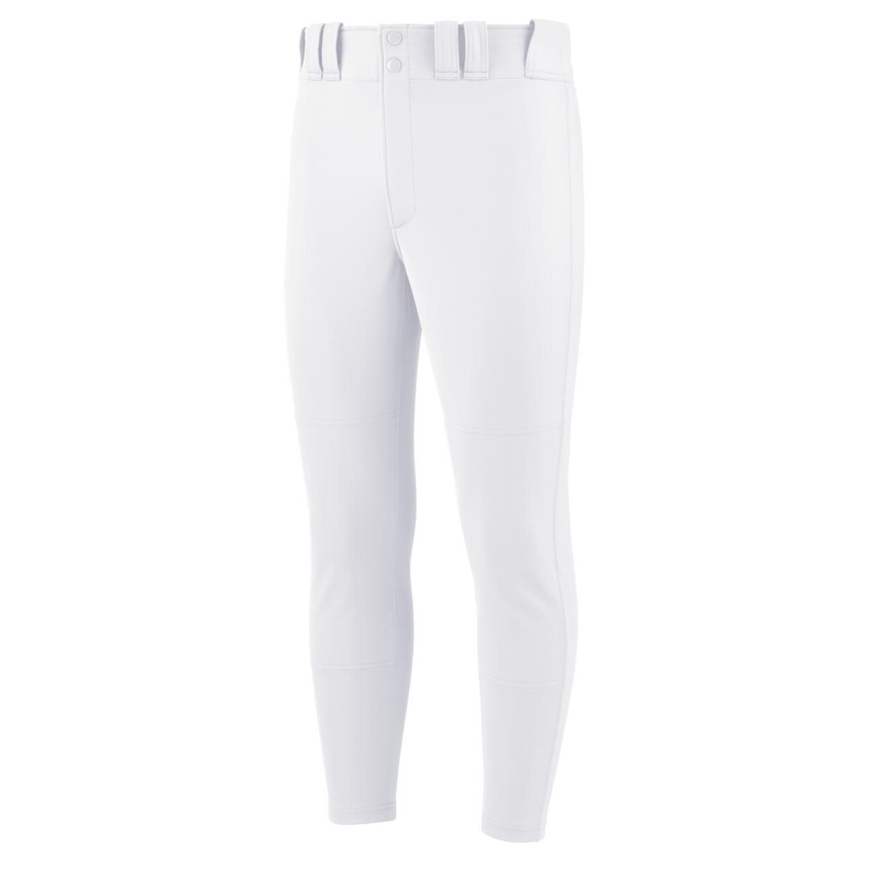 Following the success of the Mizuno Premier Tapered Baseball Pant comes the Premier 7/8 Tapered Baseball Pant. Inspired by the trendy professional look of a slim fit and shorter inseam just above the ankle, this pant is a one of kind you can't find from anyone other than Mizuno, the authentic baseball brand. - Tunnel-belt loop waist - Fly front with extended two-snap closure - Set-in back pockets with button closure - Double Knee : Dual-layer knee construction for added protection. - Hemmed bottom - Embroidered Logo - Double Knit: Lightweight and durable fabric construction