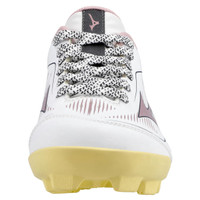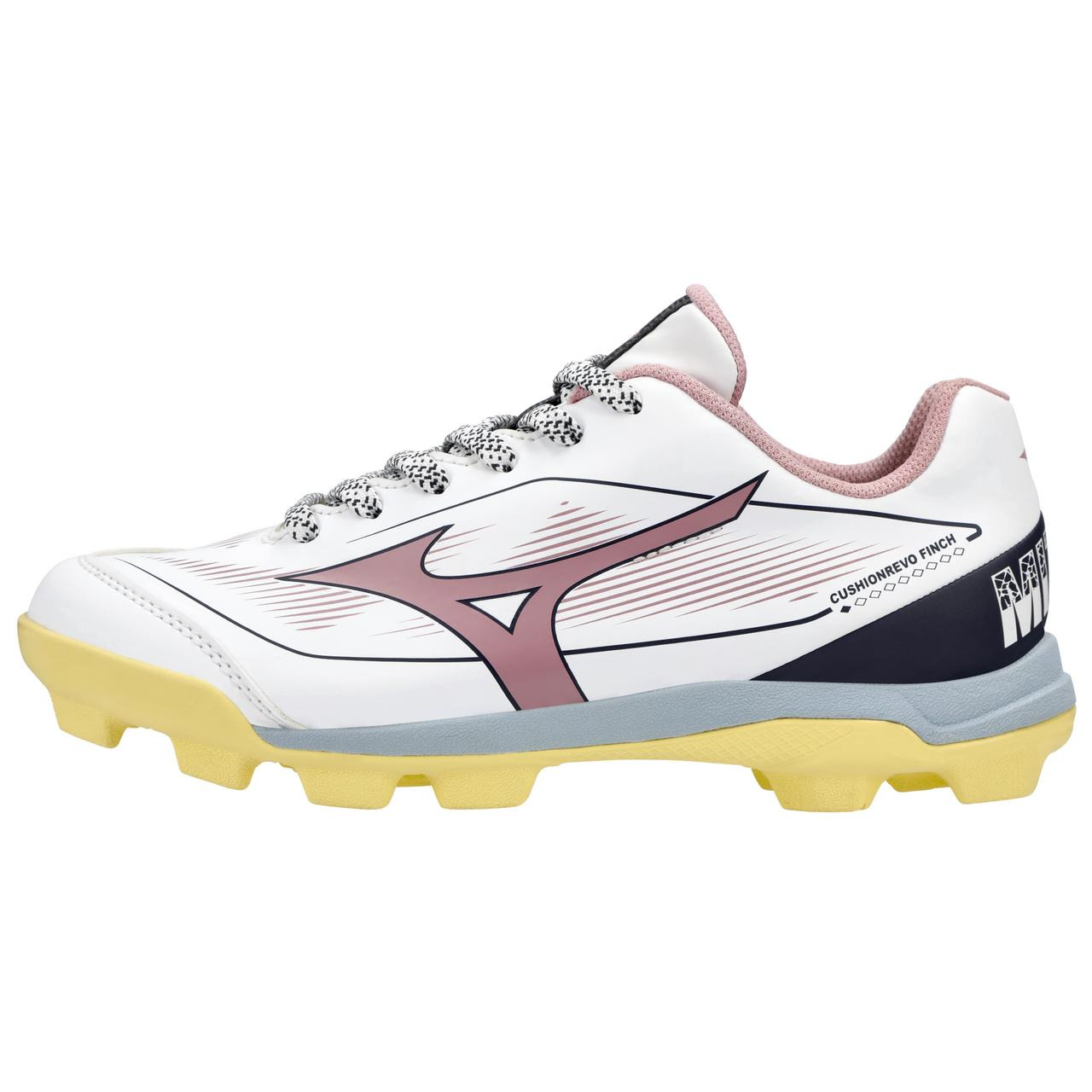 The Mizuno Cushionrevo Finch Jr. softball cleat is designed for the young athlete who demands comfort and performance. Featuring an all-weather synthetic upper for durability in any condition, this shoe is built with a reinforced toe for added structural support. Lightweight and constructed on a female last for a more precise fit, the low-top design enhances ankle mobility, allowing for quick, agile movements on the field. Perfect for young players looking to elevate their game with style and support. - Blown Rubber Outsole - GROUND GRIP: Multi stud outsole for superior grip and traction for all types of fields. - Printed RUNBIRD® Logo - Technical Synthetic Upper: Soft and durable synthetic leather that meets the demands of the modern game. - MIZUNO ENERZY (FOAM): Provides amazing cushioning and energy return.