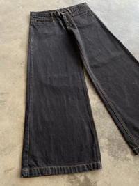 Baggy Flare Jeans Japanese 30564A Low Rise Black Denim