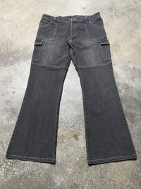 Flare Jeans Japanese Distressed Black Cargo Baggy Jeans
