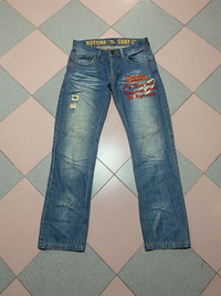 MEASUREMENT Waist: 33 inches Top to bottom: 42 inches Inseam: 31.5 inches Leg opening: 8 inches CONDITION: Used as per shown, enlarge image for clear. ATTENTION Please pay close attention to measurements provided, may ± 1 to 3cm due to manual measurement. Do not rely on tag size as pre-own items may have been altered, stretched or shrunk & vintage sizes do not translate the modern size. The best way to ensure your correct size is to compare with your best fit clothing. Please understand the real color of the item may slightly different from the picture shown due to computer/ hand phone screen lighting. All item is Sold “AS IS”, so please read the description and pictures carefully. Feel free to ask if you have any doubt. SHIPPING Shipping takes 3-7 days (EXPRESS) depend on your customs checking. Please drop your phone number for shipping purposes. PAYMENT We only accept PayPal. Item will be sent within 1-3 days after purchase. REFUND Refund only if wrong item is delivered. No refund for wrong size. **Don’t worry about tax, we will declare your item as a “GIFT” .