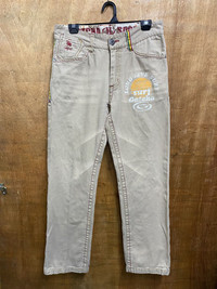 MEASUREMENT Waist: 31 inches Top to bottom: 40.5 inches Inseam: 29.5 inches Leg opening: 8 inches CONDITION: Used as per shown, enlarge picture for clear. Please pay close attention to measurements provided, may ± 2 to 4cm due to manual measurement. Do not rely on tag size as pre-own items may have been altered, stretched or shrunk & vintage sizes do not translate the modern size. The best way to ensure your correct size is to compare with your best fit clothing. Please understand the real color of the item may slightly different from the picture shown due to computer/ hand phone screen lighting. All item is Sold “AS IS”, so please read the description and pictures carefully. Shipping takes 3-7 days (EXPRESS) depend on your customs checking. We only accept PayPal. NO REFUND AFTER PURCHASE. **Don’t worry about tax, we will declare your item as a “GIFT”.