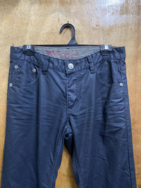 MEASUREMENT Waist: 31 inches Top to bottom: 39 inches Inseam: 29 inches Leg opening: 8 inches CONDITION: Used as per shown, enlarge picture for clear. Please pay close attention to measurements provided, may ± 2 to 4cm due to manual measurement. Do not rely on tag size as pre-own items may have been altered, stretched or shrunk & vintage sizes do not translate the modern size. The best way to ensure your correct size is to compare with your best fit clothing. Please understand the real color of the item may slightly different from the picture shown due to computer/ hand phone screen lighting. All item is Sold “AS IS”, so please read the description and pictures carefully. Shipping takes 3-7 days (EXPRESS) depend on your customs checking. We only accept PayPal. NO REFUND AFTER PURCHASE. **Don’t worry about tax, we will declare your item as a “GIFT”.