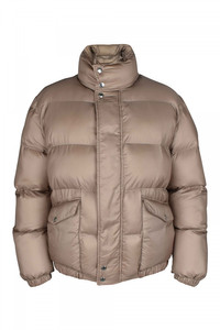 Alexander Mcqueen quilted short jacket in beige. Black graffiti style inscription McQueen on the collar. High collar. Side pockets with snaps. Zipper closure with snaps. Long sleeves. Made in Italy.