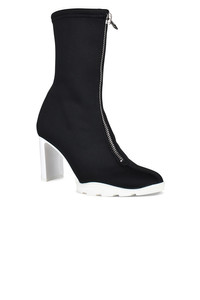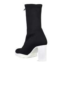 Scuba 85mm Alexander McQueen black canvas boots. Zipper closure at the front. High heel. Almond toe. Contrasting white rubber sole. Made in Italy.