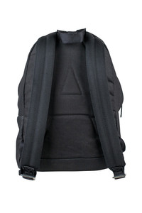 Black canvas Ambush backpack. Two zippered compartments. Embossed logo on front pocket. Adjustable black straps. Top handle. Dimensions: depth 13 cm x height 38 cm x width 26.5 cm. Made in Italy.