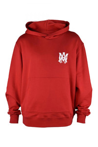 Amiri hooded sweatshirt in red cotton. White “MA” logo printed on front. White “Amiri” logo printed on back. Ribbed edges. Front kangaroo pocket. Made in Italy.
