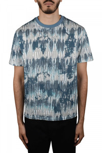 Amiri T-shirt in cotton with blue and white tie-and-dye print. Tone-on-tone monogram logo throughout. Short sleeves. Round collar. Made in Italy.