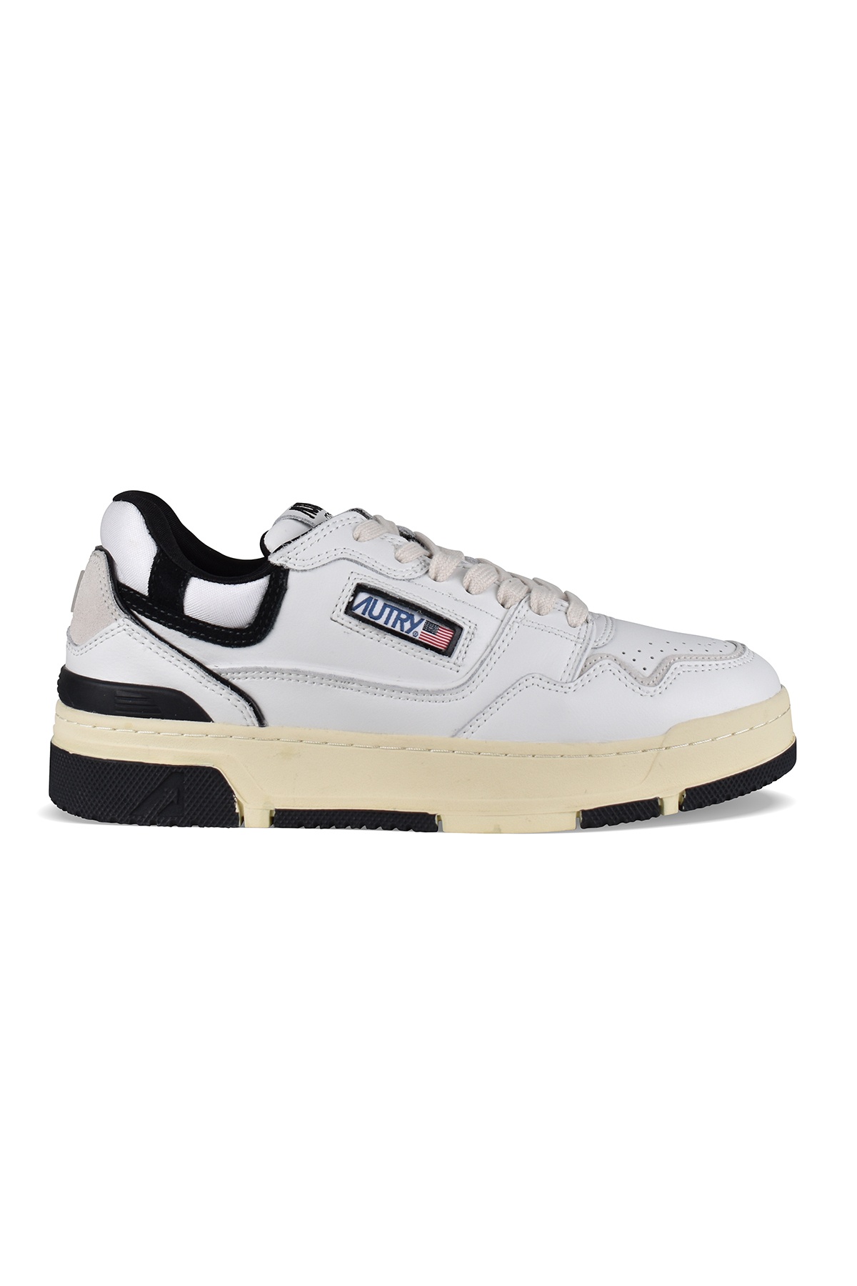 CLC Autry low-top sneakers in white and black leather. Black suede inserts on upper. Logo patch on the outside. Embossed logo counter. Tongue with logo patch. Distinctive sole with different parts in yellow and black effect rubber. Brand logo on sole. Lace-up fastening. Perforated round toe.