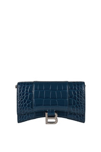 Women's Hourglass Wallet With Chain Crocodile Embossed in Dark Blue