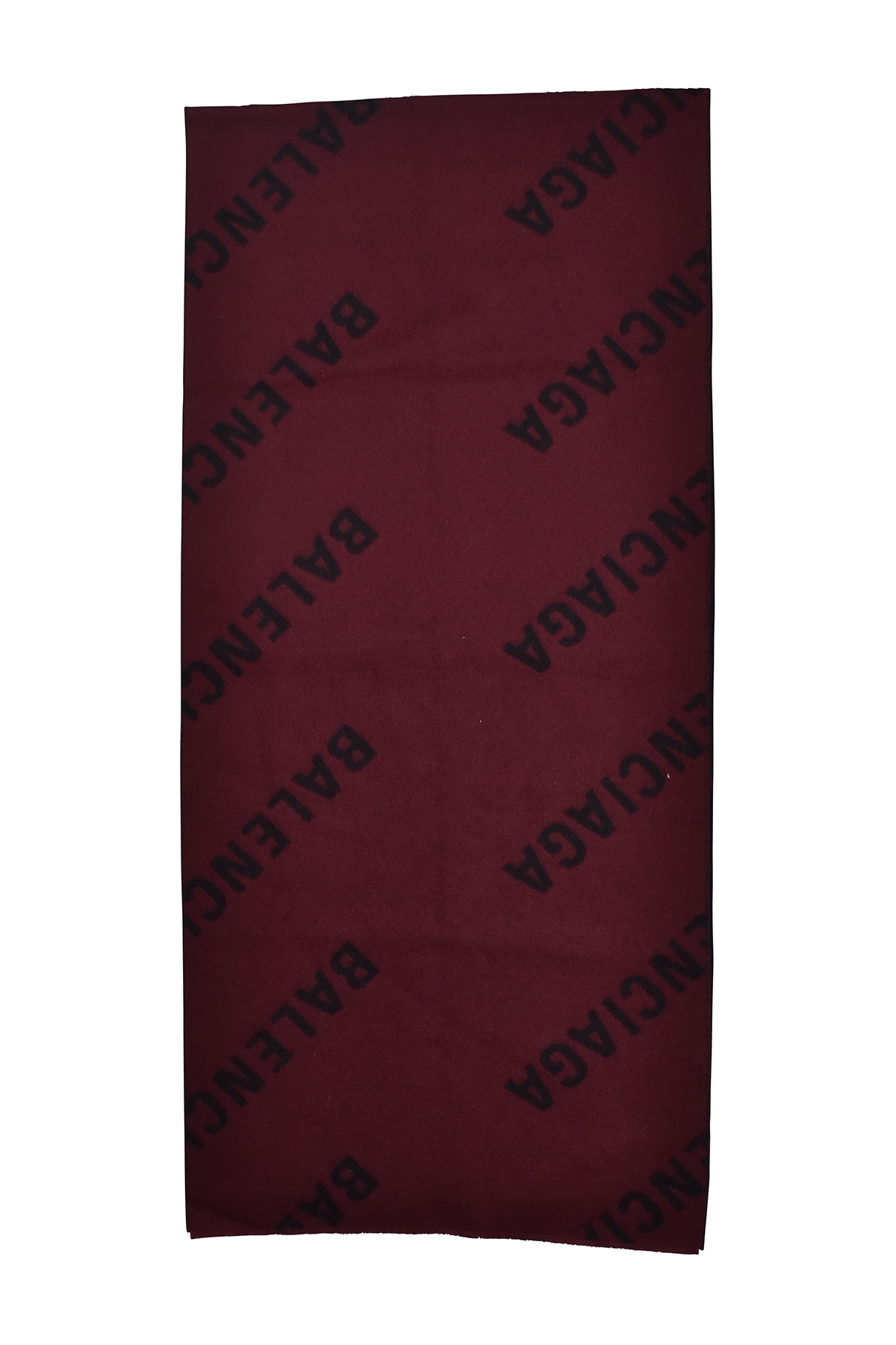 Balenciaga two-tone black and burgundy scarf. Monogrammed Balenciaga logo on both sides. Dimensions: 45 x 195 cm. 100% wool. Made in Italy.