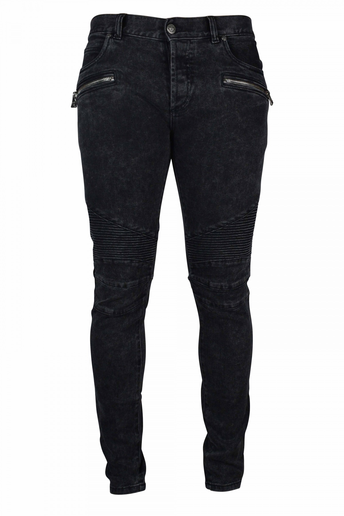 Black jeans Balmain. Zippers at the level of the pockets. Details at the level of the knees. Skinny cut. 98% cotton and 2% elastane. Made in Italy.